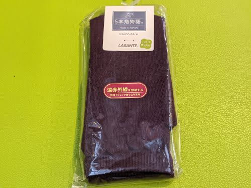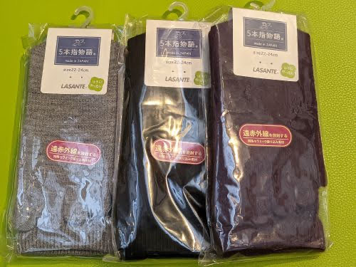 冬の定番、遠赤外線5本指ソックスです。柔らかくて温かいので、寒い時期に重宝します
