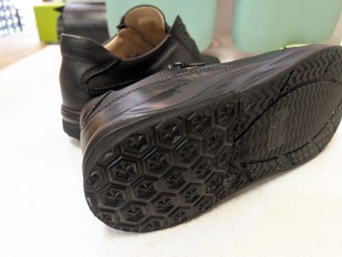 片減りしていた底材修理作業です。摩耗した状態での歩きは膝や腰、身体の痛みの原因になります。早めのメンテナンスがおすすめです。