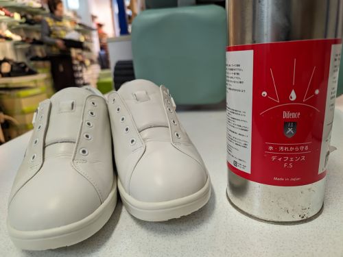 防水スプレーは表面に防水膜を張りますが時間や曲がる事で剥がれきます。それに対して超強力な業務用撥水剤のディフェンスF.Sは表面だけでなく、革素材内部に浸透して水の侵入を防ぎます。雨に濡れた際の雨シミ防止にも効果的です。撥水効果の持続は驚異の1年以上で靴を守り続けます。