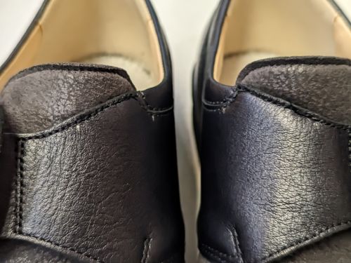 足を入れる際にシュータンが内側に入り込み履きにくいという事で縫い作業です。