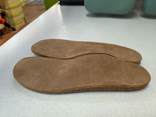 フィンコンフォートの付属のフットベットを使用して足の状態に合わせてオーダーメイドインソールの製作です。