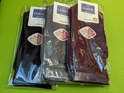 冬の定番、遠赤外線5本指ソックスです。柔らかくて温かいので、寒い時期に重宝します