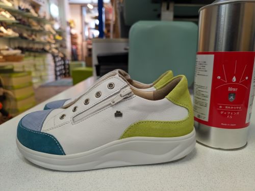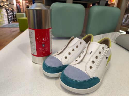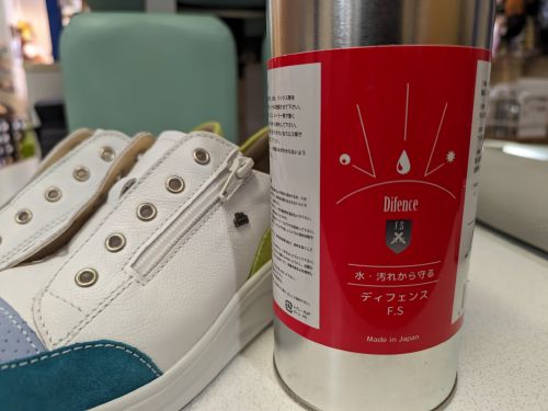 汚れが気になるホワイトモデル、お渡し前に撥水加工作業です。