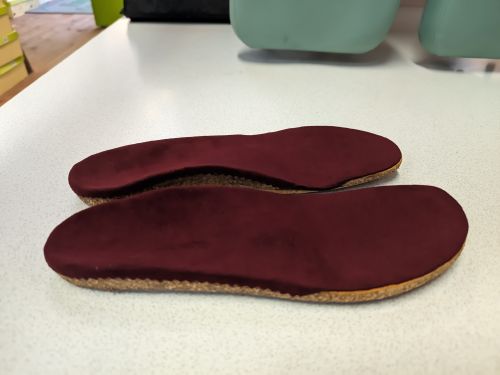 フィンコンフォートの付属のフットベットを使用して足の状態に合わせてオーダーメイドインソールの製作です。