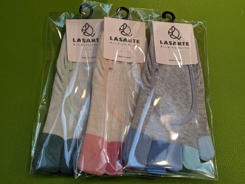指まわりのフィット感に優れるLASANTEの5本指ソックスは汗をしっかりキャッチ。綿90%、抗菌防臭加工により足元は更に快適に。カカト内側には優れた滑り止め効果と高耐久性のABSコーディング(シリコン製)滑り止めを付けました。