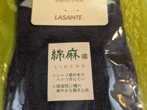 上質なコットンと麻を使用した暑い季節にピッタリのスニーカー丈、薄手の生地感の5本指ソックス。