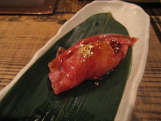 特選牛にぎりです。しかも、金拍つき・・・